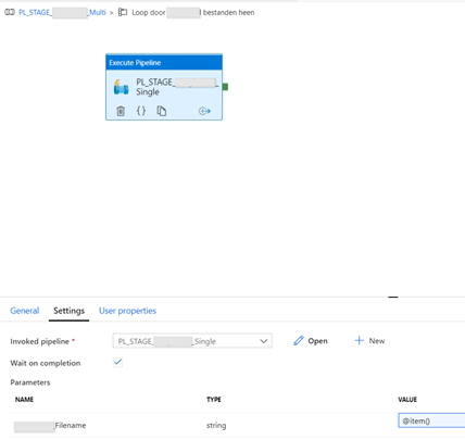 In deze ForEach heb je dan alleen een verwijzing naar de PL_*_Single met als parameter de bestandsnaam die je aan de ForEach als item hebt doorgegeven.